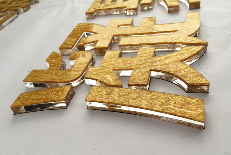 水晶字是一種亞克力實心制作的字體,他的厚度通常由底板(透明)和面板(有色亞克力或不銹鋼等材質(zhì))組成,越厚的水晶字,它的質(zhì)感和重量也就越重。